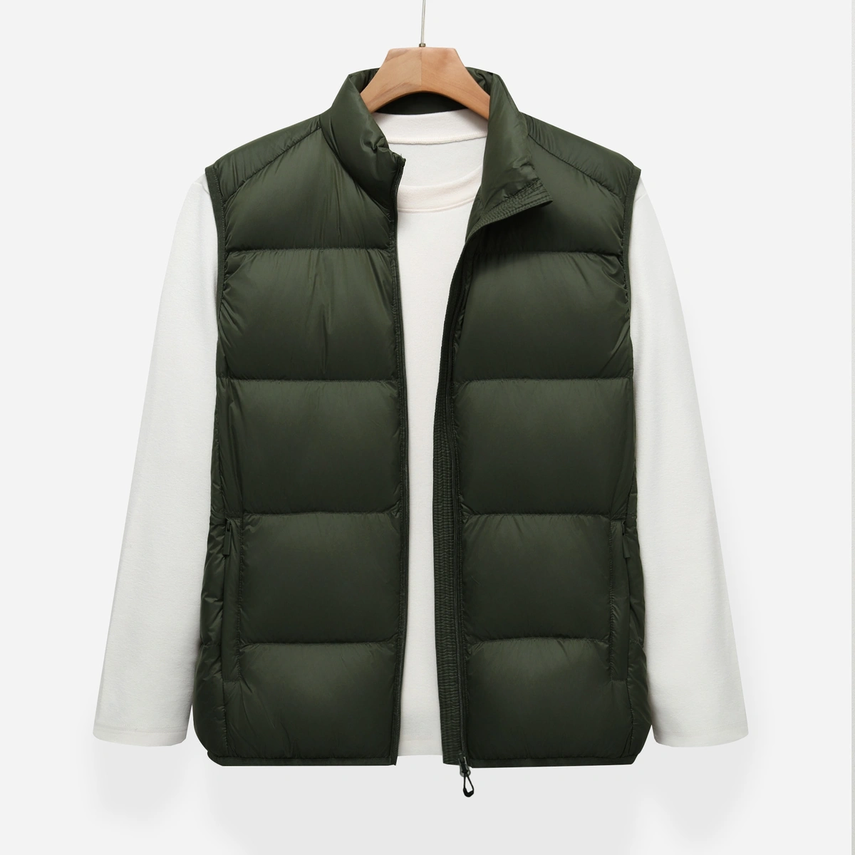 Stay Warm and Stylish with the Men Half Sleeve Down Jacket in Green